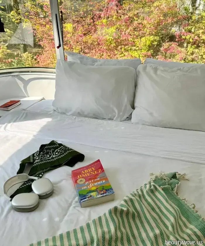 Ensure you have everything you need for the ultimate reading retreat. Bring plenty of books (or your e-reader along with a charger) as well as cozy items like blankets, fuzzy socks, and your favorite loungewear. Don’t forget your preferred snacks and drinks, be it coffee, tea, wine, or chocolate. If you like to annotate while reading, pack pens, highlighters, sticky tabs, or a journal for jotting down thoughts or reflections between chapters. You could even bring essential oils or a candle to create a calming atmosphere and make the space cozier.