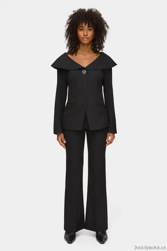 Ich weiß, dass Aligne in letzter Zeit für seine hellen Farbtupfer bekannter geworden ist, aber ich habe mich immer für die neutralen Farben der Marke interessiert, insbesondere für Schwarz. Dieser hypertaillierte Blazer fiel mir sofort auf, als ich den Laden betrat, und ich schnappte ihn mir eine Nummer kleiner, damit ich meine Taille weiter betonen konnte. Die silberne Hardware, der weite Ausschnitt und der übertriebene Kragen tragen nur zur ohnehin schicken Silhouette bei. Obwohl ich mir vorstellen kann, es mit Tonnen verschiedener Teile zu stylen, einschließlich Slip- und A-Linien-Röcken, habe ich mir am Ende eine leicht ausgestellte schwarze Hose geschnappt, die den raffinierten Reiz dieses Blazers erheblich verstärkt hat. Sie passt wie angegossen und wird definitiv meine neue Lieblingshose für 2025 sein.Kaufen Sie den Look: